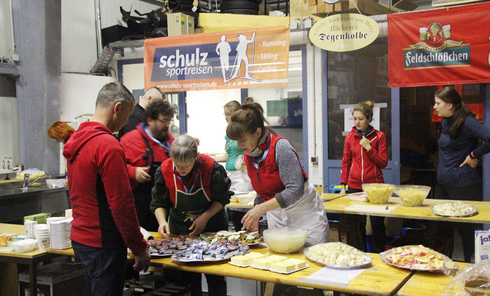Die Helfer in der Küchenvorbereitung sind für das Aufschneiden von Äpfeln, Bananen, Zubereitung von Tee und ISO-Getränken, Schmieren/Belegen von Brot und Brötchen, Zuarbeiten für Koch, Ausgabe von warmen Gerichten, Anrichten bzw. Nachfüllen aller angebotenen Lebensmittel etc. verantwortlich.